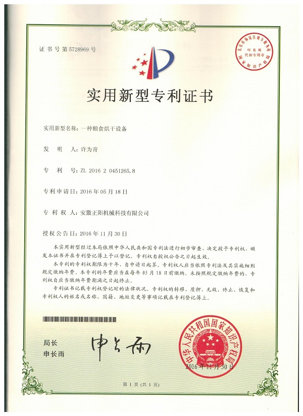 實用新型專利證書